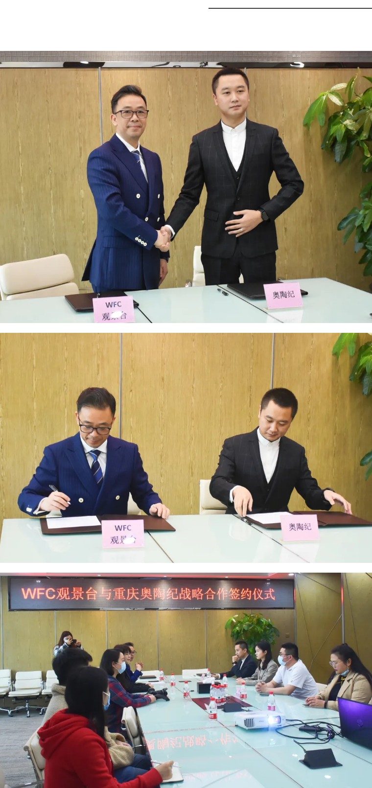 2022年4月1日WFC觀景臺(tái)與重慶奧陶紀(jì)戰(zhàn)略合作簽約儀式在重慶環(huán)球金融中心成功舉行。雙方未來(lái)將在各大平臺(tái)線上線下宣傳推廣、票務(wù)合作、游客體驗(yàn)度等多維度多層面開(kāi)展深度合作,以重慶為目的地進(jìn)行組織聯(lián)動(dòng),助力重慶旅游行業(yè)發(fā)展。