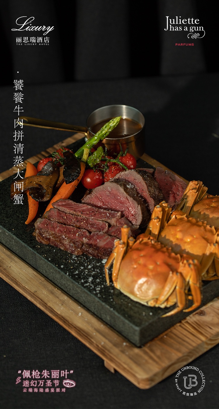1.特色主廚菜品(限量):饕餮牛肉大閘蟹拼盤(pán)