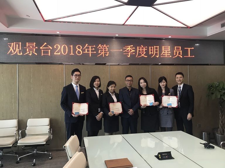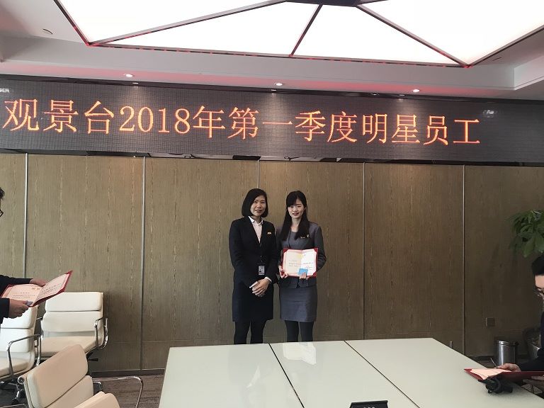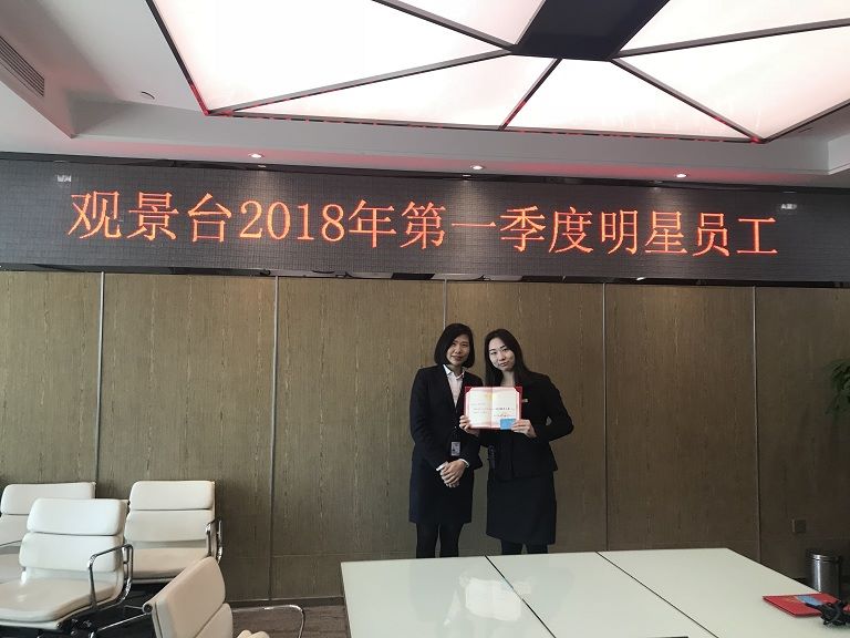 物業(yè)兼觀景臺人資經(jīng)理龍經(jīng)理首先宣讀了員工們對獲獎者的評語及期許,觀景臺營運總監(jiān)楊總、運營經(jīng)理任經(jīng)理也親自為員工頒發(fā)榮譽證書及獎勵,同時也發(fā)表了對員工們的認可與期望,希望大家繼續(xù)提高服務意識,為游客帶來更好更優(yōu)質的服務,在工作中不斷突破,取得更好的成績!