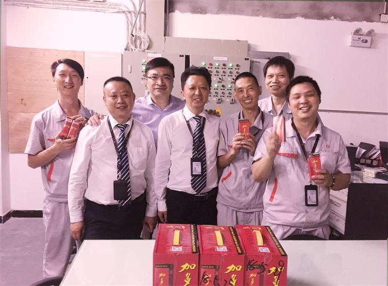 上圖:葉總(左三)向物業(yè)工程部同事發(fā)放清涼飲品