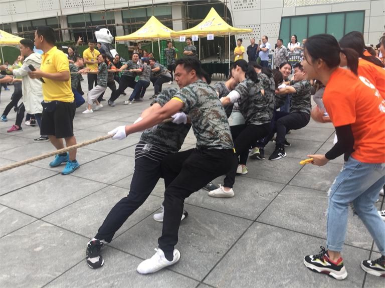 9月15日上午10時許,作為本次活動的重頭戲之一拔河比賽正式鳴哨開賽。拔河比賽是體育項目中最集中、最直接體現(xiàn)“團結(jié)就是力量”的一項運動。一條長繩,連接起一群人,集團參賽的運動員都為一個共同的目標(biāo),拼盡洪荒之力,進入忘我境界!隨著一聲哨響,每個人都拼命地攥緊繩子,腳下恨不得深深地釘進地里,眼睛瞪得滾圓,臉兒憋得通紅,表情甚是詼諧有趣。集團派出的啦啦隊隊員在一旁的加油助威聲此起彼伏。最終經(jīng)過激烈奮戰(zhàn),華迅戰(zhàn)隊摘得亞軍。