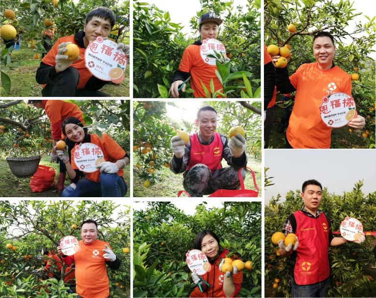 上圖:集團志愿者在果林采摘廣柑