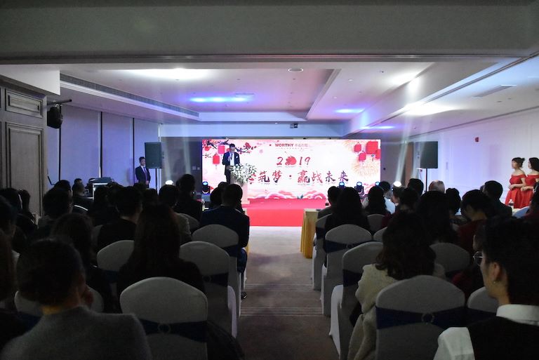 【華迅地產(chǎn)/總經(jīng)辦】玉犬辭舊春風(fēng)勁,金豬迎新好運多。2月1日,集團2019年新春團拜會在裝飾一新的重慶環(huán)球金融中心麗思瑞酒店隆重舉行,集團領(lǐng)導(dǎo)、員工、酒店管理公司代表共200余人齊聚一堂,共賀新春。