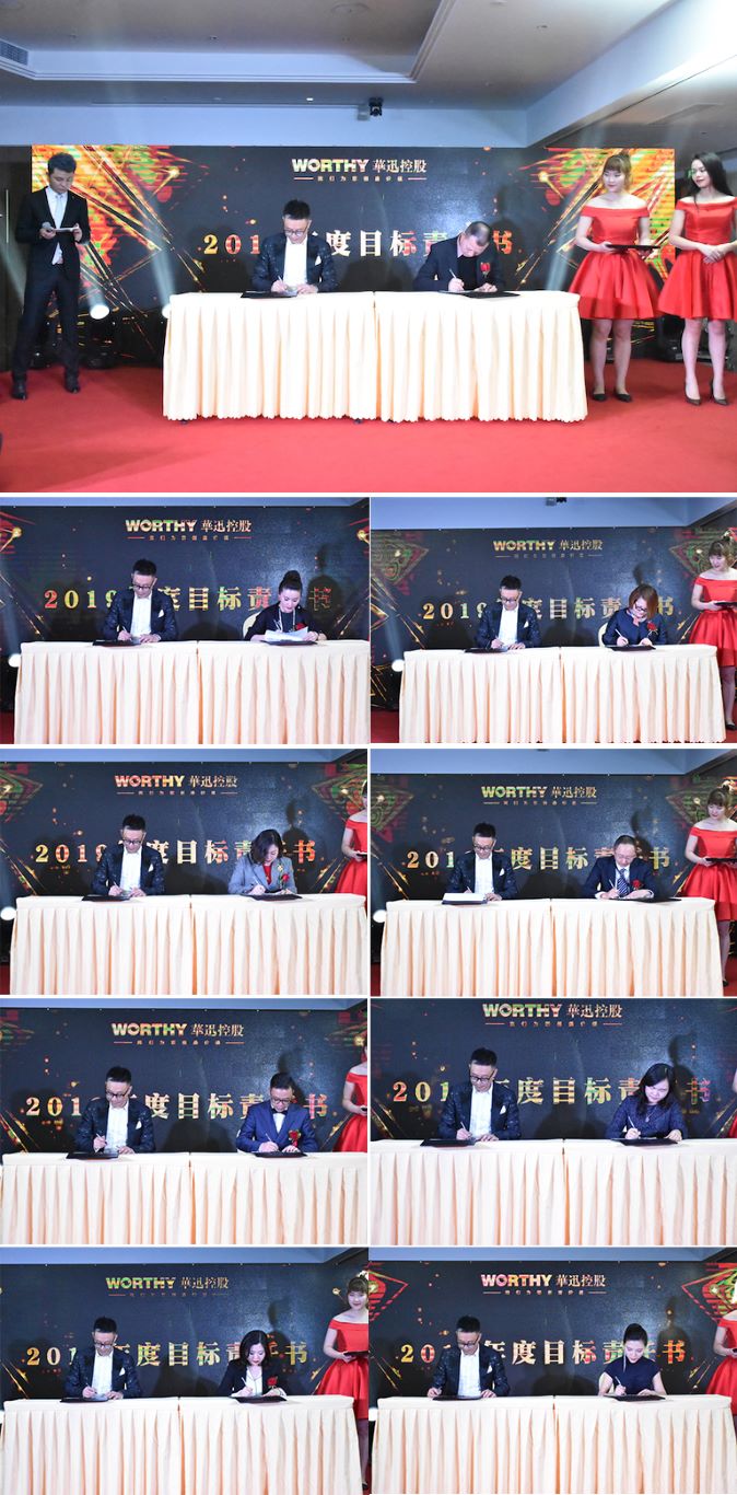 上圖:李鵬總裁與各版塊負責(zé)人簽署2019年目標責(zé)任書