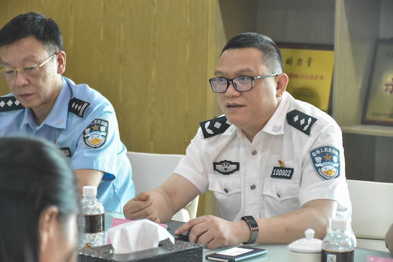 【華迅地產(chǎn)/總經(jīng)辦】8月16日,為深入貫徹落實(shí)《重慶市公安局服務(wù)民營經(jīng)濟(jì)發(fā)展30條》,營造全區(qū)“親商、安商、護(hù)商”良好氛圍,重慶市公安局渝中區(qū)分局夏小平政委率隊(duì)蒞臨集團(tuán)走訪調(diào)研,并主持召開服務(wù)民營企業(yè)座談會(huì)。集團(tuán)總裁李鵬出席座談會(huì),集團(tuán)營銷總監(jiān)高瑜、觀景臺(tái)運(yùn)營總監(jiān)楊晉、物業(yè)副總監(jiān)肖忠軍、物業(yè)工程部經(jīng)理張繼操列席座談會(huì)。
