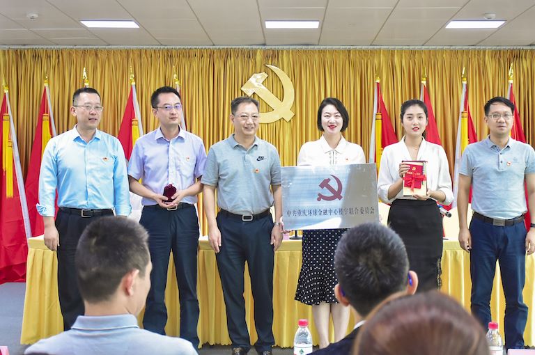 隨后,渝中區(qū)委常委、組織部長王志宏、解放碑街道黨工委副書記管亮向重慶環(huán)球金融中心樓宇聯(lián)合黨委授牌、受章,并贈(zèng)送《黨章》、《習(xí)近平新時(shí)代中國特色社會(huì)主義思想學(xué)習(xí)綱要》等學(xué)習(xí)用品。