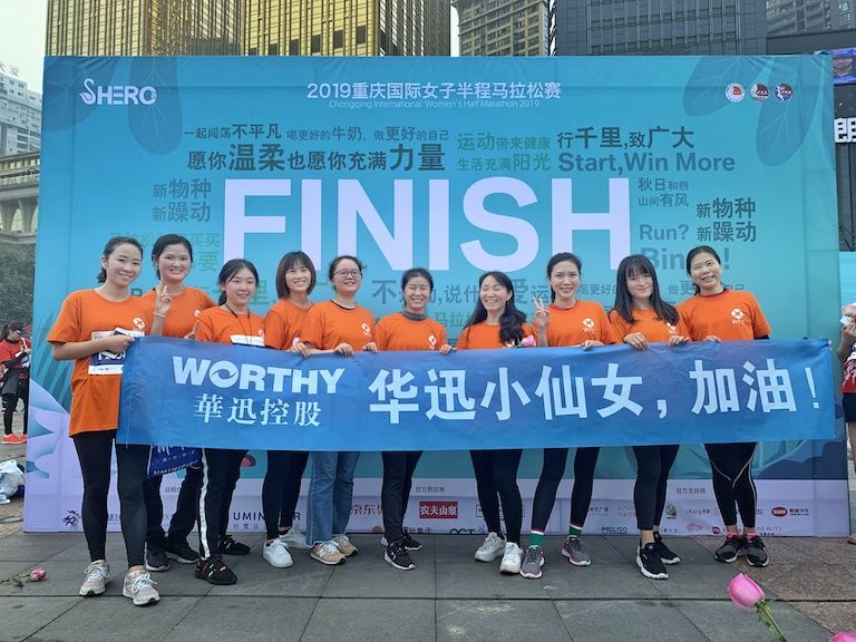 【華迅地產(chǎn)/總經(jīng)辦】暮秋時(shí)節(jié)、涼風(fēng)習(xí)習(xí),但卻擋不住華迅人的滿腔熱情。2019年11月10日上午8點(diǎn)鐘,2019重慶女子半程馬拉松比賽在重慶市南濱路鳴槍開跑。為提倡文明、積極向上的健康生活方式,展示集團(tuán)員工風(fēng)采,來自集團(tuán)的18名員工參加了本次比賽。