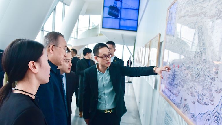 潘基文先生在WFC會仙樓觀景臺工作人員的講解下,詳細(xì)參觀了位于WFC會仙樓觀景臺的主題展區(qū),在《重慶府治全圖》前感受母城文化的厚重,并在WFC會仙樓觀景臺上俯瞰解放碑、江北嘴、南濱路、彈子石的重慶風(fēng)貌,感受重慶經(jīng)濟(jì)社會的發(fā)展成果,從不一樣的角度了解“山水之城·魅力之地”的真實(shí)內(nèi)涵。