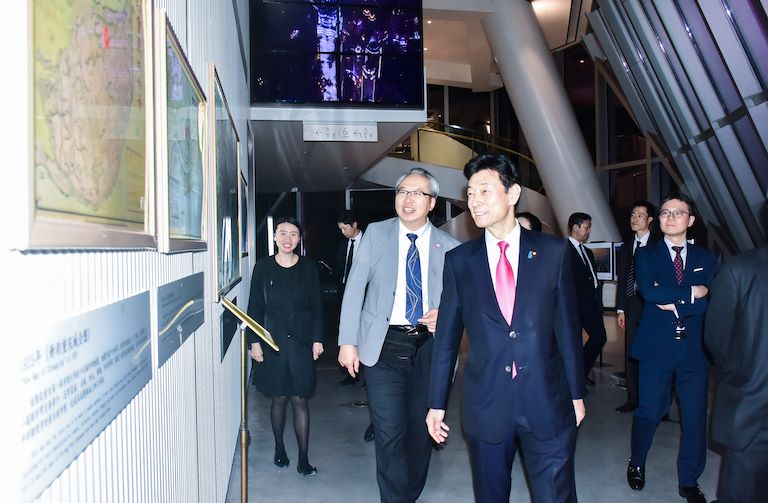 西村康稔在高總的陪同講解下,詳細(xì)參觀了位于WFC會(huì)仙樓觀景臺(tái)的主題展區(qū),在《重慶府治全圖》前感受母城文化的厚重,并在WFC會(huì)仙樓觀景臺(tái)上俯瞰解放碑、江北嘴、南濱路、彈子石的絢麗夜景,從觀景臺(tái)的展列的各種攝影作品中體會(huì)“山水之城·魅力之地”的真實(shí)內(nèi)涵。